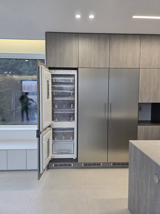 키큰장 밖으로 삐져나오는 뚱뚱이 냉장고 혹은 가구장 사이에 틈이 있는 냉장고가 고민이라면 가구 패널 부착형 빌트인 냉장고에 주목해 보자. 가구 패널형 빌트인 냉장고는 키큰장 옆에 있을 때 마치 키큰장 여러 개가 있는 것 같은 통일감과 심플함을 연출한다. 냉장고, 냉동고, 김치냉장고 전용 제품이 있다.