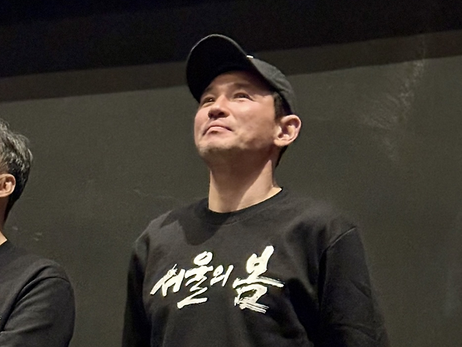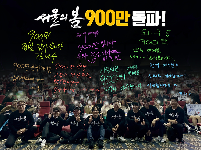 어느덧 전국 관객 수 900만 명을 돌파하며, 1천만 관객 돌파를 앞둔 '서울의 봄'. 출연 배우들은 전국 극장을 찾아 관객들에게 감사의 인사를 전하고 있다. 지난 17일 광주광역시 서구의 한 영화관을 찾은 김성수 감독과 배우들.