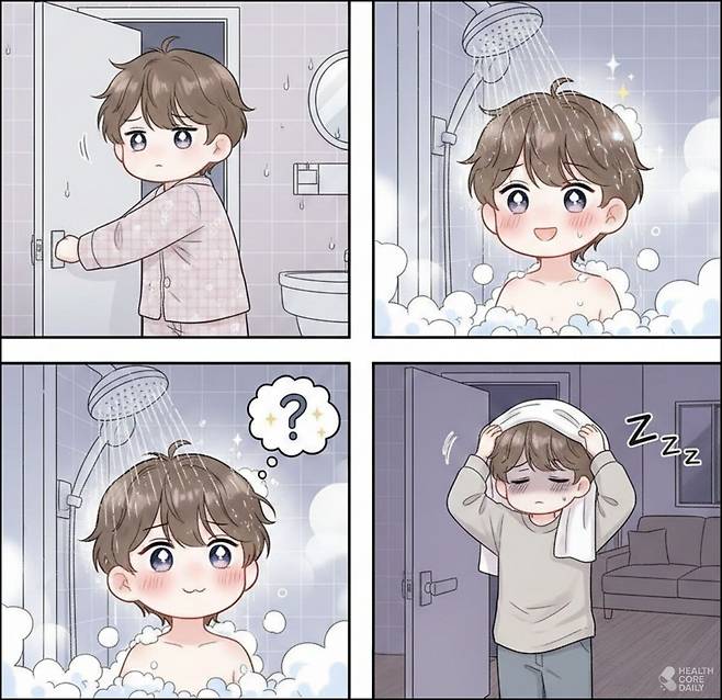 샤워할 때 뜨거운 물이 피부에 닿으면, 피부 가까이에 있는 혈관이 열리면서 혈압이 내려간다. 문제는 샤워를 마치고 욕실 밖 찬 공기에 닿는 순간이다. 그때 혈관이 급하게 수축하면서 혈압이 다시 올라가는데, 이 변화 폭이 크면 어지럽거나 머리가 띵할 수 있다.