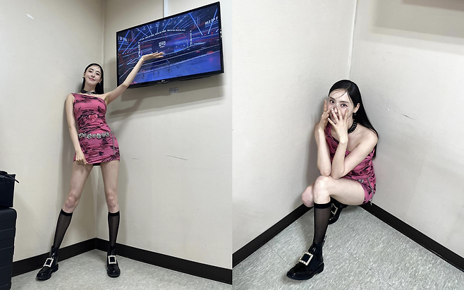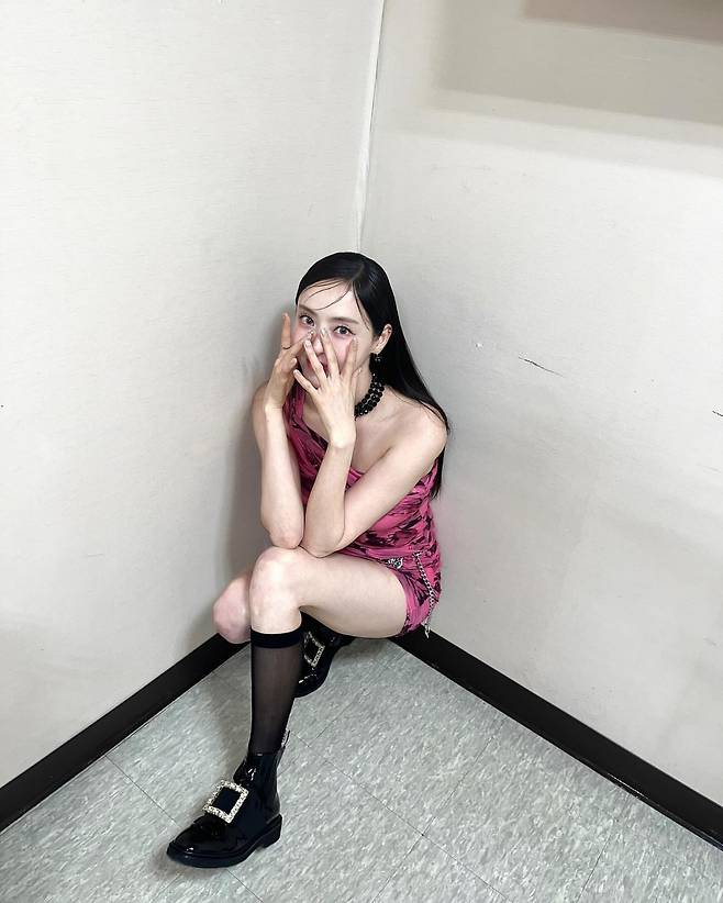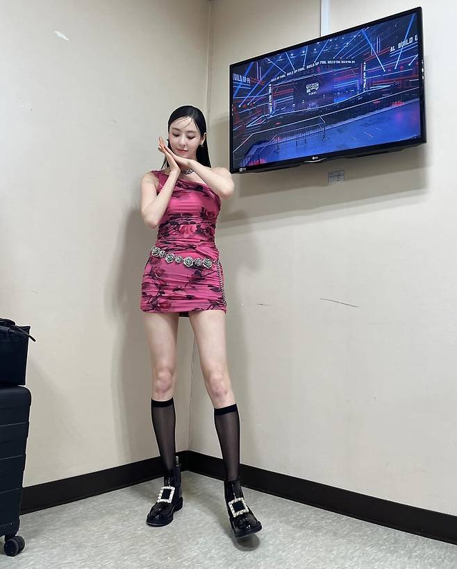 사진 속 이다희는 완벽한 각선미가 돋보이는 핑크 미니 드레스를 입었습니다.