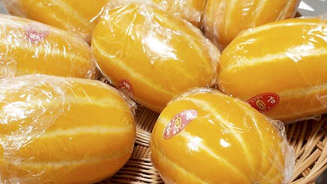 이렇게 참외 하나하나를 정성스럽게 랩으로 감싸 놓으면 참외의 수분이 빠지지 않고 오랫동안 보관이 가능하답니다.