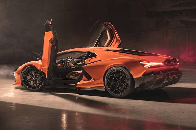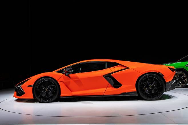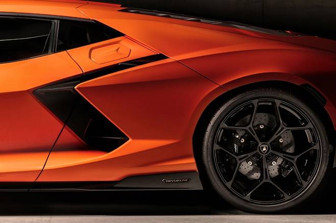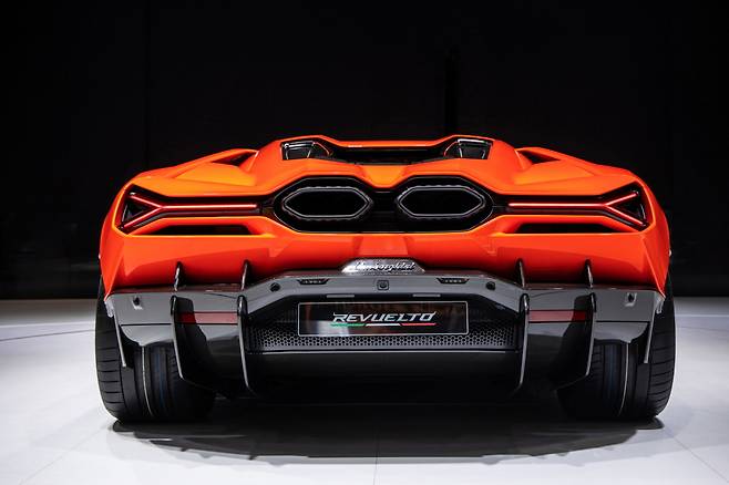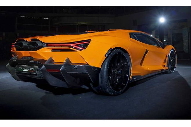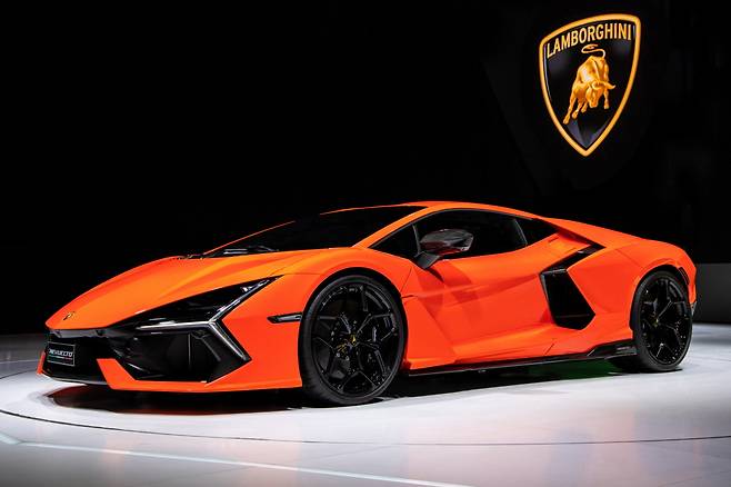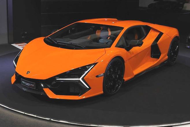 람보르기니는 23일 레부엘토(Revuelto)를 국내 최초로 공개했다. 레부엘토는 V12 자연흡기 엔진과 3개의 전기모터, 8단 더블 클러치 변속기가 조합된 브랜드 최초의 하이브리드 모델로 총 출력 1015마력을 발휘한다. 제로백은 2.5초에 불과하다. 국내 출시 여부는 미정이다.