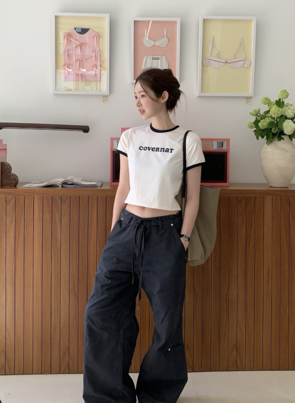 여름철 무더위 속에서도 스타일은 포기할 수 없다면,COVERNAT 크롭 링거 티셔츠, 지금 당장 데일리룩에 추가해보자.