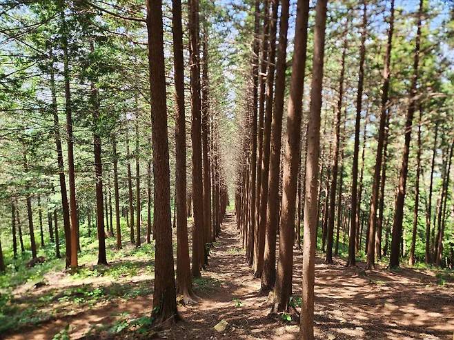 편백의 장엄함 속으로 걷는 힐링의 시간 고성 ‘갈모봉 자연휴양림’