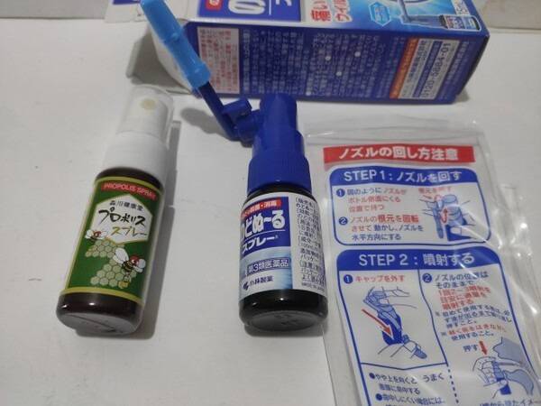 노도누루 스프레이 유효성분 PVP-요오드가 인후 세균·바이러스 99.9% 살균(일본 제3류의약품). 롱노즐로 편도 직접 분사.
