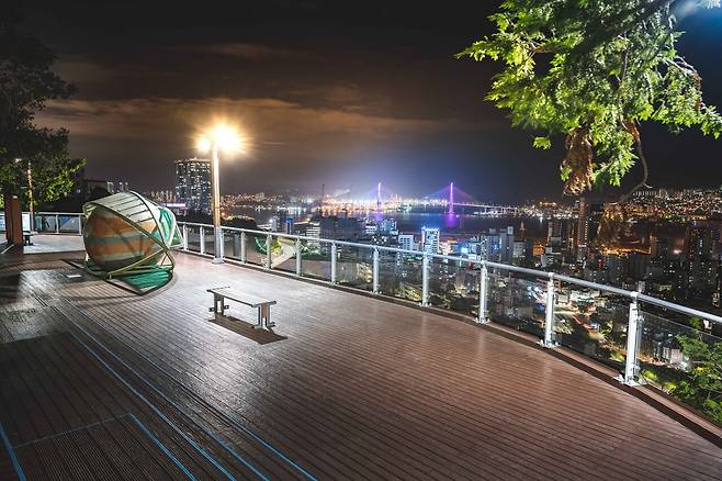 영주하늘눈전망대는 시민들 사이에서 손꼽히는 부산 야경 명소로, ‘산복도로 걷기 좋은 산책로 조성 사업’의 일환으로 만들어졌습니다.