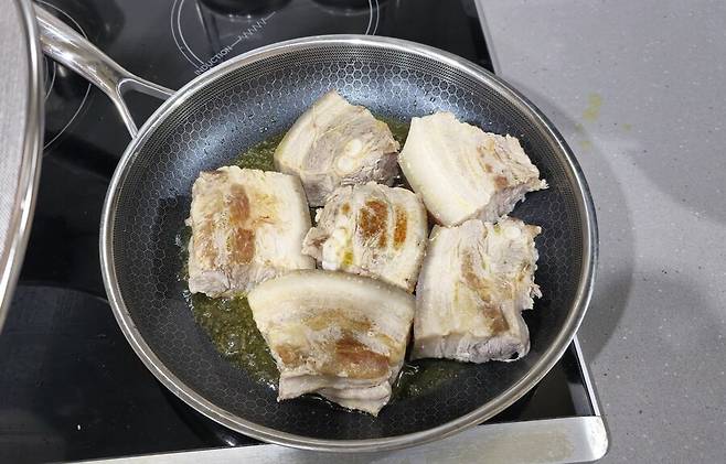 기름두른 팬에 모든면을 적당히 튀겨줍니다.