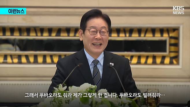 이날 이 대통령은 "(유물을 돌려주며) 이제 각자 제자리에라고 하는 걸 좀 상징적으로 보여 주고 싶었죠. 중국이 우리에게 줄 거는 아무리 찾아봐도 없더라고요. 그래서 '푸바오라도 줘라' 제가 그렇게 한 겁니다, '푸바오라도 빌려줘라.'"라고 말했는데요.