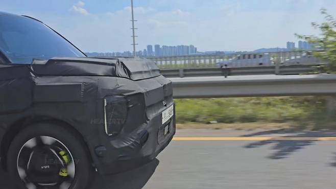 충전구의 경우 왼쪽 펜더 부분에 위치하는 것으로 확인됐다. 이는 기존 연료 주입구 위치와는 다른 배치로, 전기차만의 특징을 보여주는 부분이다.