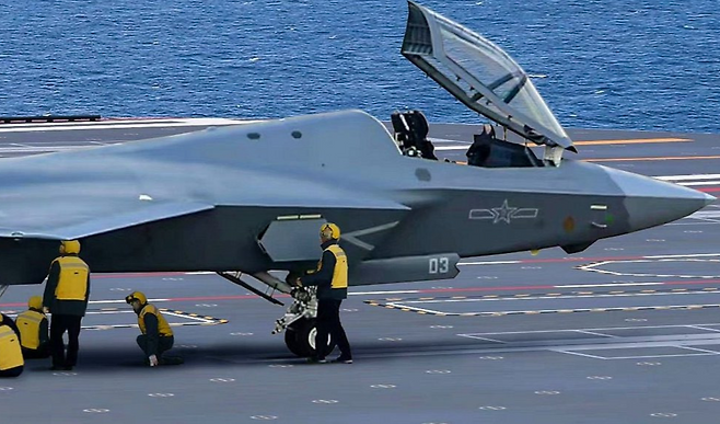 중국이 차세대 항공모함 함재기로 운용하려는 J-35는 FC-31의 함재기형 모델로 미국제 F-35를 쏙 빼닮아 있지만 형상은 좀 더 가늘고 날씬합니다.