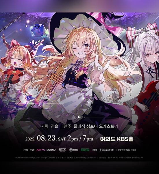 최근 플래직(대표 진솔)은 아티브 사운드(공동대표 김정현·김찬영·김정환)와 공동으로 'Invitation from Gensokyo 2025 ~ Midnight Concerto'(동방프로젝트 오케스트라 콘서트 2025)를 8월 23일(토) 여의도 KBS홀 대공연장에서 개최한다고 밝혔다.