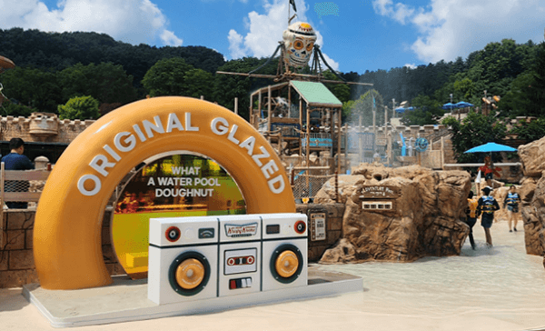 롯데GRS의 도넛 프랜차이즈인 ‘크리스피크림도넛’은 ‘캐리비안베이’와 함께 프로모션을 운영 중이다. 크리스피크림도넛은 시원한 수영장을 대표하는 요소들을 도넛으로 구현한 ‘왓 어 워터풀 도넛’ 시즌 도넛 5종(홀리 유니콘, 샤이닝 샤크, 플로팅 터틀, 아이스 버킷, 투 머치 파인애플’ 출시와 함께, 캐리비안베이 방문 고객 대상으로 함께 즐길 수 있는 다양한 오프라인 프로모션을 운영하고 있다. 대표 메뉴로 꼽을 수 있는 ‘아이스 버킷’의 판매가는 2,800원이다.