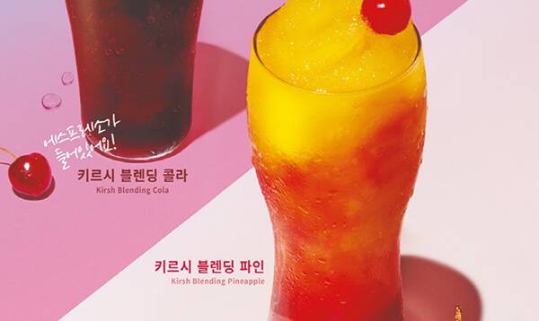 더본코리아의 커피 전문점 브랜드 ‘빽다방’은 코스메틱 브랜드 ‘키르시 블렌딩’과 협업해 키르시 블렌딩 음료 2종을 출시했다. 빽다방은 키르시 블렌딩의 상징과도 같은 체리를 활용해, 향긋하면서도 달콤한 풍미를 담은 음료를 개발했으며 체리 그림이 그려진 컵홀더까지 만들어 협업의 의미를 더했다. 콜라보 제품 2종은 키르시 블렌딩 파인(3,500원)과 키르시 블렌딩 콜라(3,500원)로, 전국 빽다방 매장에서 주문할 수 있다.