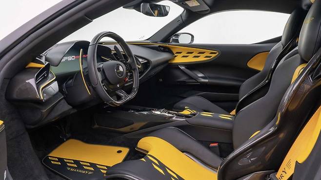 실내는 블랙에 옐로우가 가미되어 스포티한 방향성을 띠지만, 인테리어의 마지막 디테일까지 최고급 가죽으로 덮었다. 절반이 노란색 가죽으로 덮인 시트는 인테리어의 비주얼 하이라이트이며, 높은 기능성과 편안함, 탁월한 디자인이 완벽하게 결합된 분위기를 연출한다. 가죽을 사용하지 않거나, 사용할 수 없는 부분에는 카본 파이버를 사용했다. 스포츠 가죽 스티어링 휠, 플로어 매트 및 정밀하게 수를 놓은 여러 개의 만소리 로고는 인테리어 튜닝을 우아하게 마무리한다.