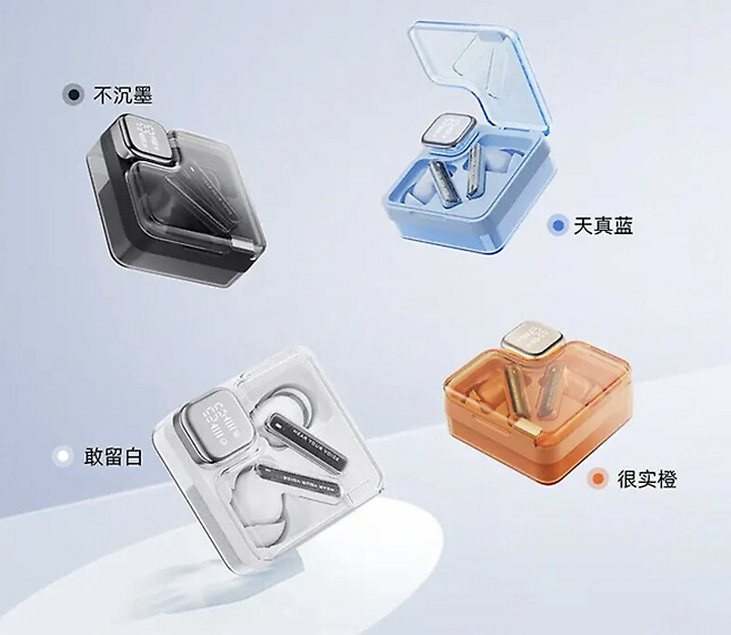 QCY 멜로버드 네오 이어버드는 내부 부품을 보여주는 투명한 충전 케이스와 화려한 색상으로 개성있는 디자인을 보여주고 있습니다. 기존에 에어팟 디자인을 벗어난 새로운 스타일이라 신선한 매력을 느낄 수 있습니다.