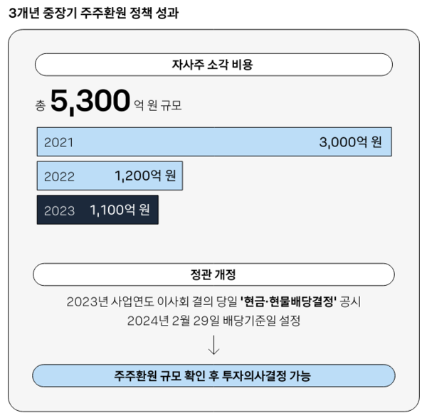 카카오가 주주환원 정책 일환으로 2021년부터 2023년까지 3년 동안 5300억원 규모 자사주를 소각했다.