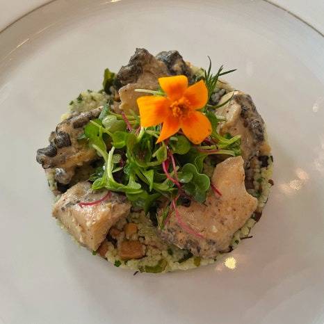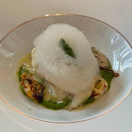 조갯살과 트러플 그린 퓨레와