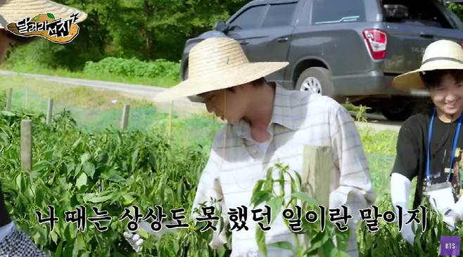 이후 진은 무더운 날씨에 땀을 줄줄 흘리며 오디오 대신 고추로 바구니를 꽉 채웠다. 확실히 학생들보다 능숙한 고추따기. 고추밭 사장님도 인정했다. 이에 진은 "옛날에 집이 고추 농사를 했었다"며 어머니와 두런 두런 이야기를 나누며 바구니를 가득 채웠다.