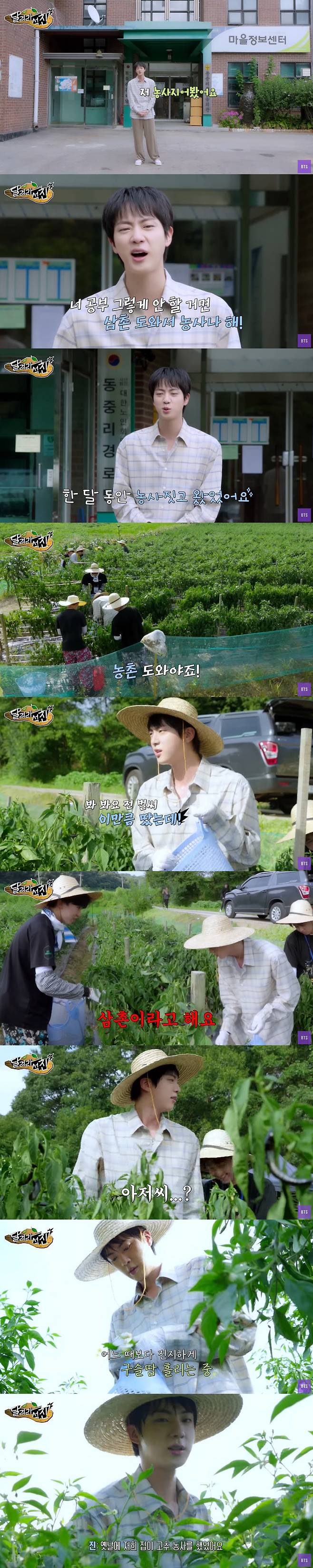 8일 유튜브 채널 'BANGTANTV'에는 "[달려라 석진] EP.9 | 피, 땀, 고추"라며 영상이 게재됐다.