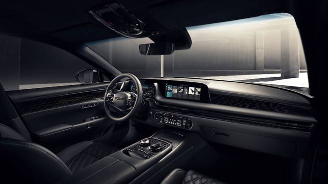 G90 라인업 중에서도 특별한 존재감을 보이는 모델이 바로 ‘G90 블랙’이다. 가장 큰 특징은 내외관 전반에 걸쳐 적용된 올블랙 테마다. 단순히 색깔만 바꾼 것이 아니라 소재별로 다른 깊이감을 살려 3차원적 시각 효과를 연출했다.