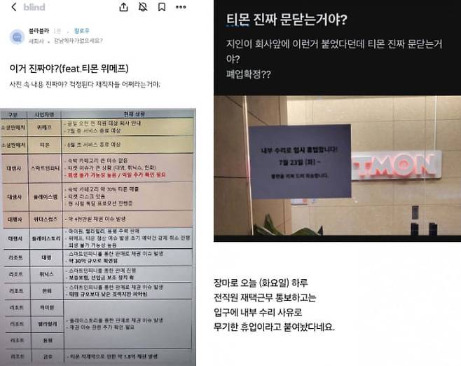 관계사인 티몬도 동일한 문제를 겪고 있습니다. 티몬의 경우 아직 직원들에게 퇴사를 공식적으로 언급하지 않았습니다.