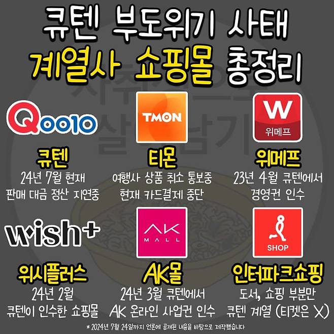 - 큐텐 부도 위기 사태, 계열사 총정리