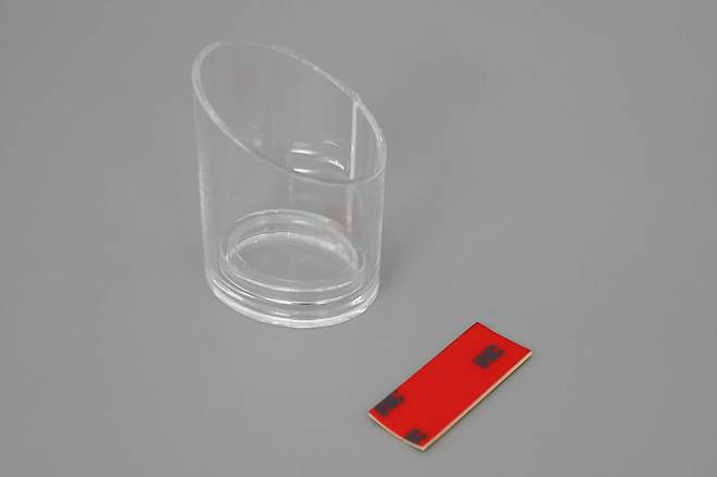 유토렉스 퍼펙트케어 그리드컬렉션 UV-C 히팅 칫솔살균기와 함께 제공되는 치약 홀더는 양면 테이프를 이용해 벽에 부착해 사용할 수 있다.
