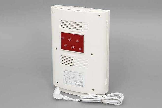 본체 뒷면에는 전원 코드가 연결되어 있고, 뒷면 가운데에는 양면테이프가 적용되어 있는 벽걸이패널이 부착되어 있다.