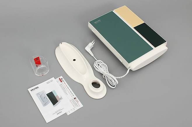 구성품은 칫솔살균기 본체와 스탠드 거치대, 치약홀더, 그리고 사용 설명서로 이루어져 있다. 사용 설명서에는 몇몇 구성품이 더 적혀있는데, 나머지는 본체에 부착되어 있다.