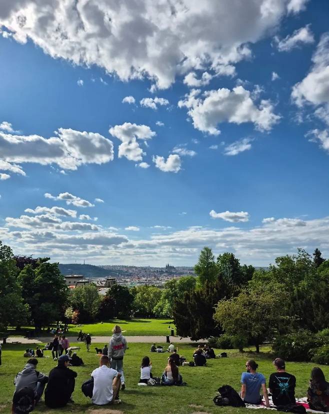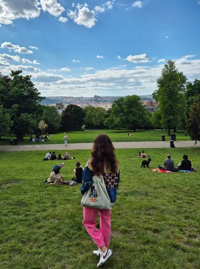 김지수는 5일 자신의 채널에 “진짜 소중한 건 그저 사소한 평범한 것들. 매일 보고 또 봐도 질리지 않는 하늘, 구름, 잔디밭, 맛있는 케잌을 발견했을 때의 행복, 집밥, 그리고 참았다가 먹는 라면!”이라는 글과 함께 체코 여행 사진을 게재했다.