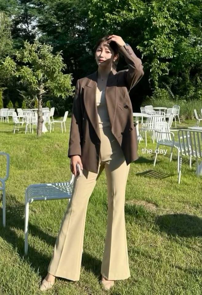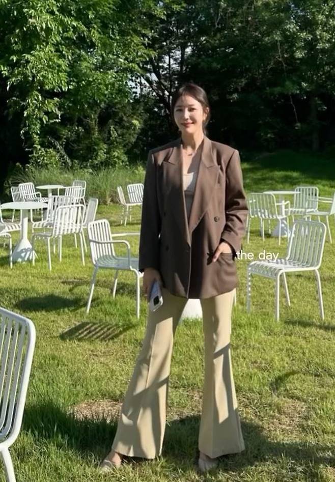 안혜경은 다리가 더욱 길고 슬림하게 보이는 뉴트럴 톤의 슬림 부츠컷 팬츠에 동일 톤의 이너 톱을 매치하고 묵직한 초콜릿 브라운 컬러의 더블 브레스트 재킷을 걸친 모던 클래식의 하객룩을 선보였다.