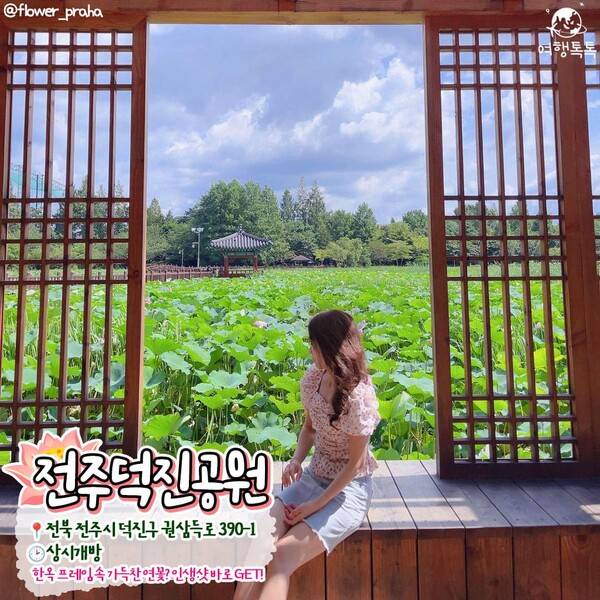 숲속 놀이터와 연화장 도서관, 한옥 분위기의 포토존이 있는 전주 덕진공원도 연꽃 명소로 유명합니다. 7월 중순부터 연못에 가득 들어찬 연잎으로도 충분히 만족스러운 감상을 할 수 있습니다.