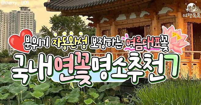 오늘 여행톡톡에서는 국내의 연꽃 명소 7곳을 선정해 소개해드렸는데요. 각 명소마다 다른 분위기를 연출하고 있어 매년 연꽃의 시기가 찾아오면 한 장소씩 방문해보는 것도 좋겠습니다.
