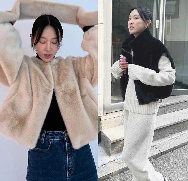 공개한 사진에서 이지혜는 에코 밍크 재킷과 시어링 퍼 베스트를 착용한 외출 데일리룩으로 슬림하게 떨어지는 겨울 스타일을 선보였다.