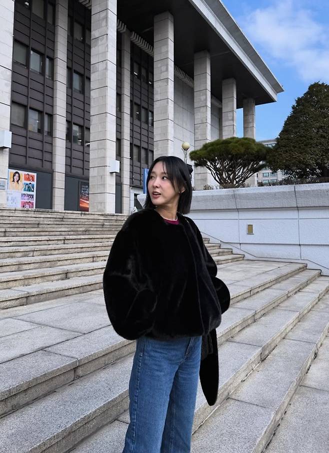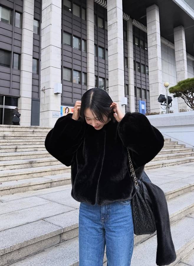 가수 겸 배우 이지혜가 에코 밍크 재킷과 퍼 베스트로 슬림하면서도 스타일리시한 윈터룩을 완성했다.