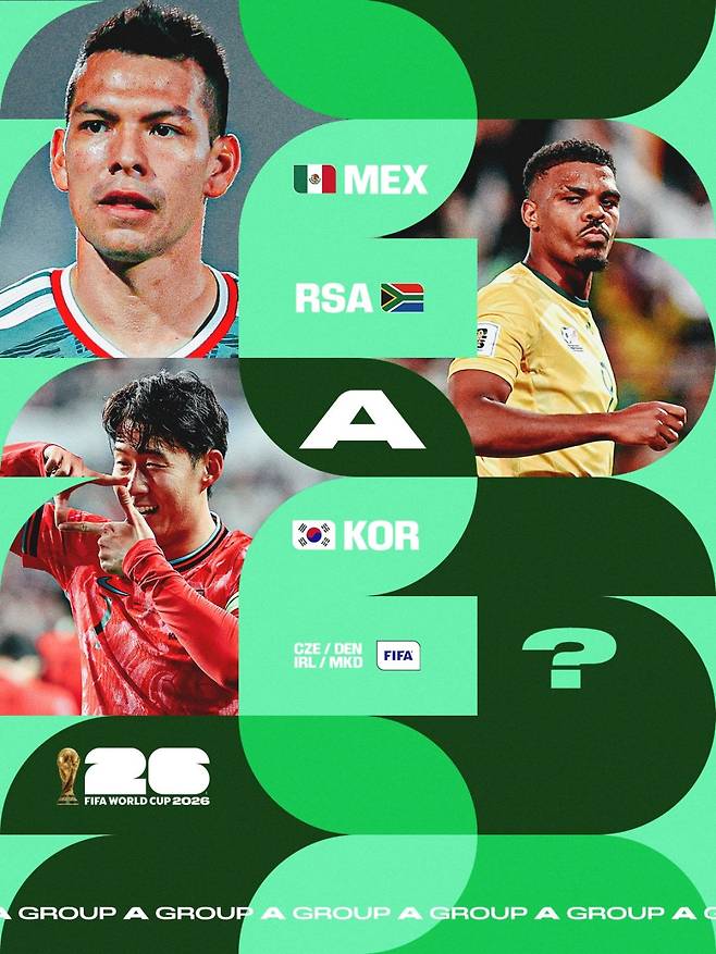 축구 대표팀은 이번 대회에 공동 개최국 멕시코가 속한 A조로 편성됐는데 남아프리카 공화국, 그리고 유럽축구연맹(UEFA) 플레이오프 패스 D(북마케도니아, 덴마크, 체코, 아일랜드) 승자와 경쟁한다.