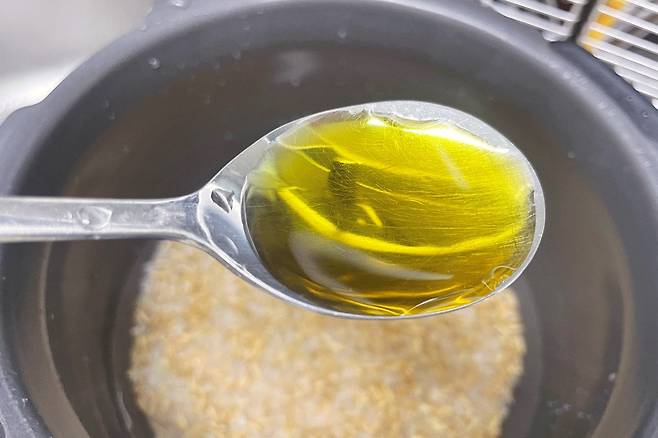 밥 할 때 혈당을 낮추고 싶다면 올리브오일 한 스푼 넣어주세요.
