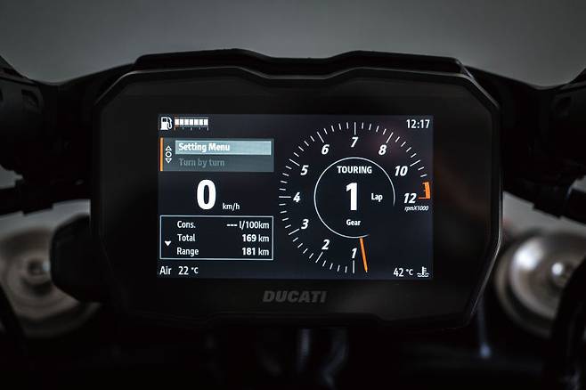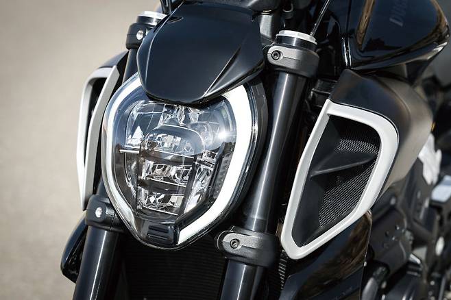 디테일은 과격하면서도 섬세하다. 큼직한 에어 인테이크와 4연장 머플러는 확실하게 성능을 시각화하고 있다. 연료탱크와 시트는 큼직하게 키우고 허리는 잘록하게 조여 빵빵한 볼륨감을 더한다. 여기에 C자가 마주보는 형태의 주간주행등이 더해진 LED헤드라이트와 매트릭스타입의 테일램프 디테일은 완성도를 높인다. 생김새가 이전 세대에 비해 더 크고 와일드해졌으니 더 거칠고 무시무시한 바이크를 기대했다면 시트에 앉아 바이크를 다루는 순간 약간의 배신감이 느껴질지도 모르겠다. 가볍게 다룰 수 있는 차체와 한층 더 편해진 포지션은 바이크의 첫인상을 만만하게 만들어 준다. 클러치 레버압력도 출력과 배기량에 비해 가볍지만 매끄러운 레버의 조작감이 다루기 더 쉽게 느껴진다. 이렇듯 살짝 살짝, 예상이 긍정적인 방향으로 빗나갈 때의 반전 때문에 바이크가 더 특별하게 느껴진다. 두카티는 이러한 조율을 잘 하는 브랜드라는 걸 다시 한번 실감했다.