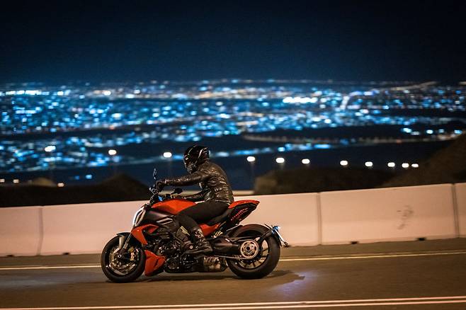 디아벨 시리즈의 첫 모델은 2011년에 등장했다. 초기 콘셉트는 스포츠 네이키드인 몬스터 시리즈에 슈퍼바이크와 크루저의 요소를 합친, 일명 메가몬스터였다. 디아벨을 두고 크루저냐 네이키드냐 말이 많지만 여러가지가 합쳐진 만큼 하나의 장르로는 정의하기 어렵다. 머슬 크루저라는 표현도 어울리긴 하지만 어쨌든 디아벨은 장르가 디아벨이다. 이전의 디아벨을 굳이 장르적으로 구분할 때 크루저에 더 가깝다고 느꼈던 것은 아무래도 트윈 엔진 때문이었다. 토크풀한 트윈엔진이야말로 크루저로 대변되는 이미지니까. 하지만 V4로 업데이트 되면서 크루저 바이크의 분위기 말고 디아벨만의 개성이 더 강조되는 느낌이다.