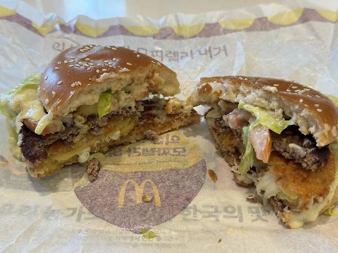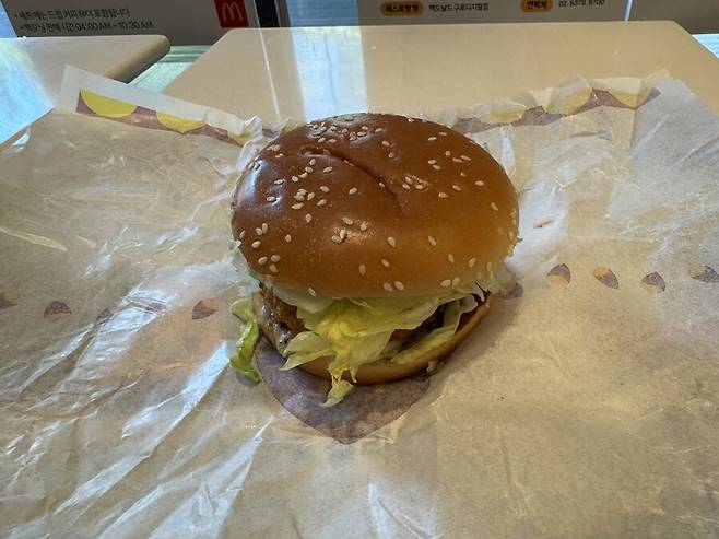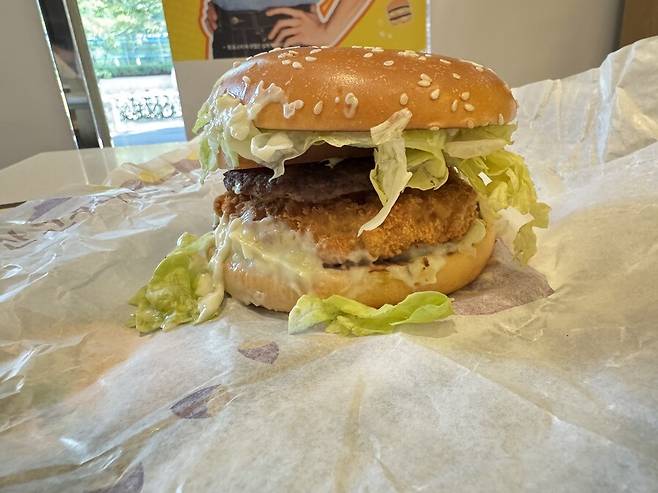 할라피뇨 마요 소스는 매운맛이 크게 느껴지지 않고, 고구마 고로케랑 쇠고기 패티, 치즈, 토마토, 양상추의 중심을 잡아둬 제법 잘 어울리는 효과를 냅니다.