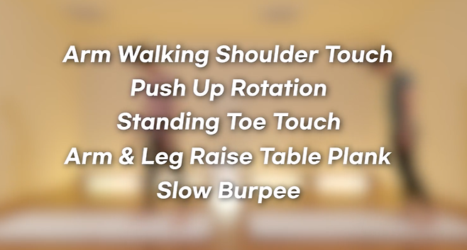 여자 팔뚝살 제거하는 운동은 총 5개 운동을 45초 수행, 15초 휴식 방식으로 진행하면 됩니다. (따라 하기 어려운 분들의 경우 30초 운동, 30초 휴식으로 진행해 주세요.)