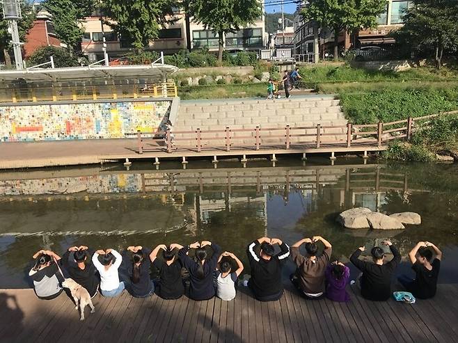 | ▲ 불광천 산책에 나선 누리사랑지역아동센터 아이들 |