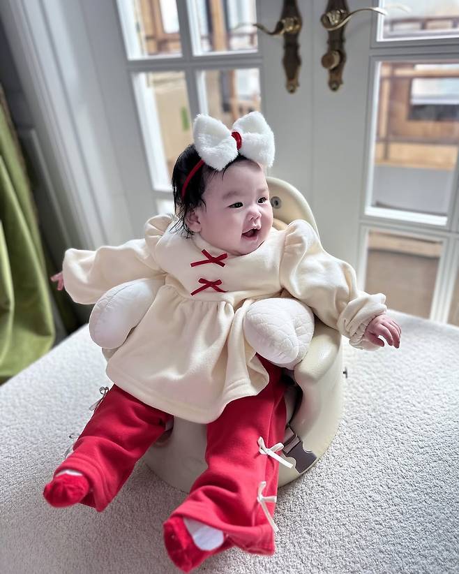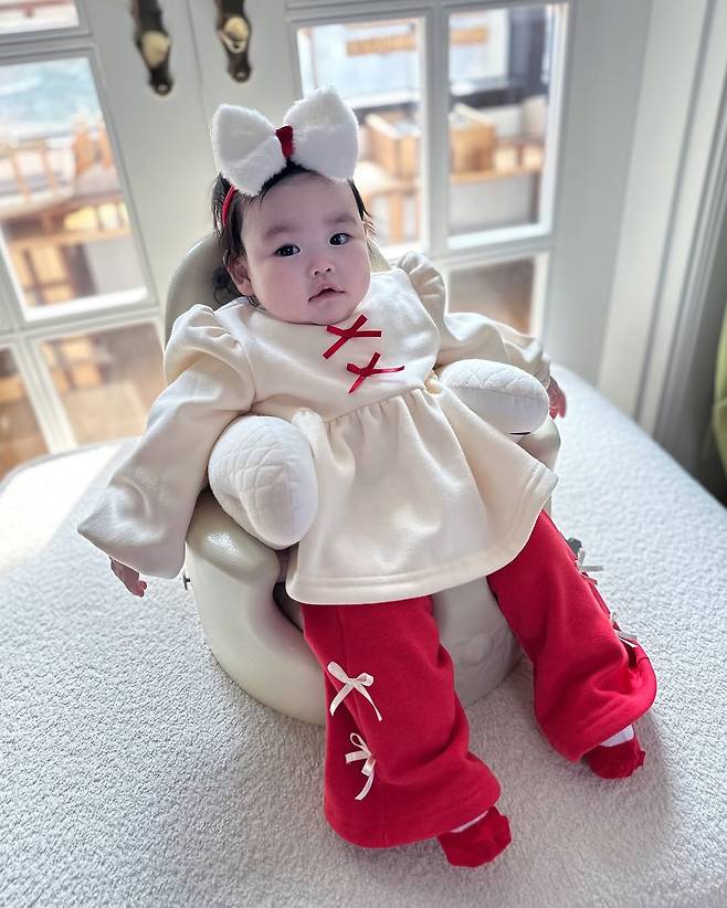 사진 속에서 박수홍과 아내 김다예는 화이트 컬러의 의상을 맞춰 입고 딸과 함께 행복한 시간을 보내고 있다. 새하얀 피부와 또렷한 이목구비를 자랑하는 재이는 카메라를 향해 사랑스러운 눈빛을 보내며 시선을 사로잡았다.