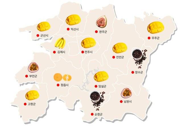 최근 기승을 부리는 이상기후가 '농도' 전북에 '혁신의 바람'을 일으키고 있다. 도내 14개 시·군 곳곳에서 아열대 작물을 재배하고 있는 가운데 해당 작물이 전북 농업 발전에 새로운 열쇠가 될지 관심이 쏠린다.