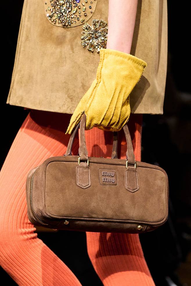 유독 이번 시즌 스웨이드 백이 돋보이는 이유는 또 있습니다. 바로 하우스 브랜드들이 아이코닉 백으로 내세우던 가방을 스웨이드 소재로 출시했다는 사실! 미우미우는 ‘아르카디 백’, 프라다는 ‘클레오 백’의 스웨이드 버전을 런웨이에서 선보였죠. 이외에도 다수의 브랜드에서 스웨이드 소재의 아이코닉 백을 선보여 기존보다 선택의 폭을 넓혔습니다.