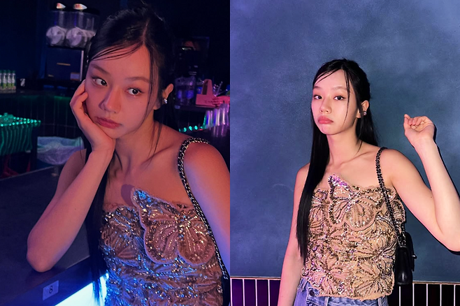 혜리가 선택한 세일러 가디건과 화려한 뷔스티에 톱