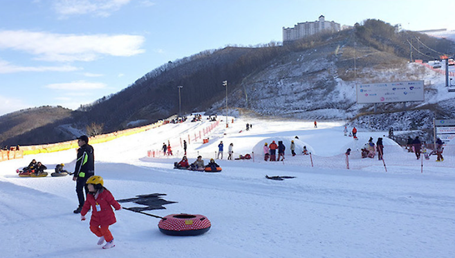 하얀 능선을 따라 펼쳐진 대관령의 설경을 배경으로 눈썰매를 타는 경험, 평창 알펜시아리조트에서라면 가능합니다. 플라스틱 썰매와 튜브 썰매 중 고를 수 있어 취향에 맞는 스피드를 즐길 수 있고, 무빙워크로 편리하게 이동할 수 있어요. 리조트 내 스키장과 온수풀 워터파크까지 있어 1박 2일로 겨울 레저와 휴식을 모두 누리고 싶은 여행객들에게 딱이에요.