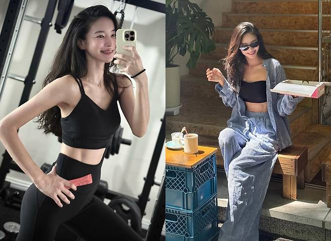 특히 아이를 출산했다고는 믿을 수 없는 김윤지의 탄탄한 완벽 보디라인은 감탄을 자아낸다.