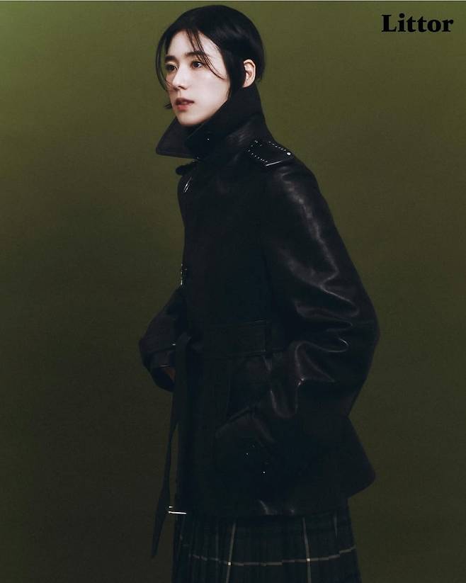 정은채는 고급스러운 광택이 돋보이는 블랙 가죽 숏코트를 착용해 시크하고 카리스마 넘치는 매력을 극대화했습니다.