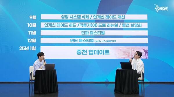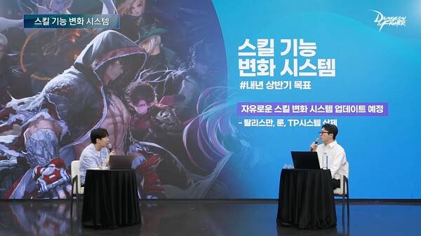 넥슨이 24일 공식 채널에서 '던전앤파이터' 라이브 방송 '던파 개발자 컨퍼런스(DDC)'를 진행했다. 성승헌 게임 캐스터와 박 디렉터가 향후 업데이트와 유저들의 피드백 관련 허심탄회한 이야기를 나눴다. 이때 방송 도중 자막으로 유저들의 궁금증을 해소하는 새로운 진행 방식은 유저들의 웃음과 칭찬을 받았다.